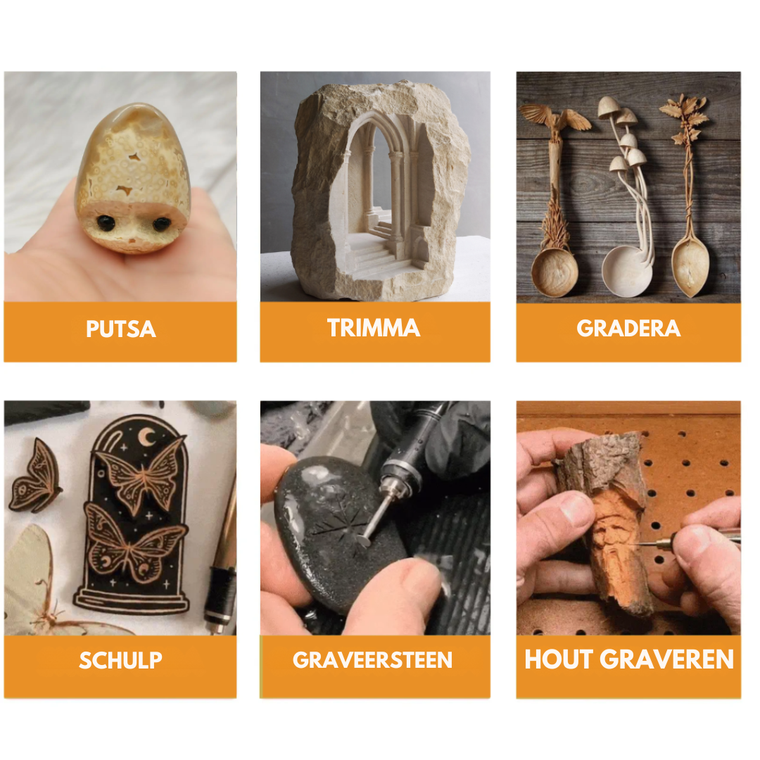 Met de ArtPro Carving Pen kun je eindelijk jouw creatieve ideeën tot leven brengen. Of je nu hout, metaal, glas of plastic wilt graveren, deze pen geeft je de vrijheid om te creëren wat je maar wilt. Geen gedoe meer met zware en onhandige apparaten – deze compacte en lichte graveerpen gaat overal met je mee!