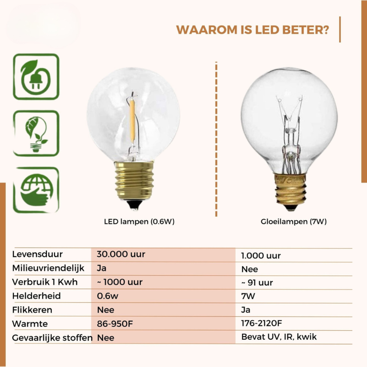 ★★★★★"Heel blij met mijn aankoop. Het lichtsnoer is waterdicht en geeft een lekker warm licht. Perfect voor feestjes en gezellige avonden."