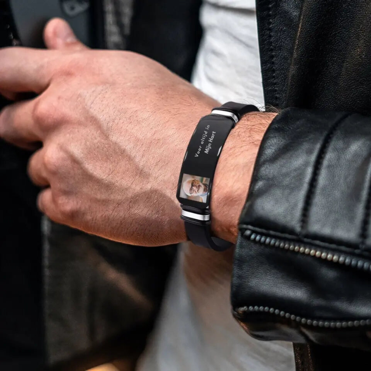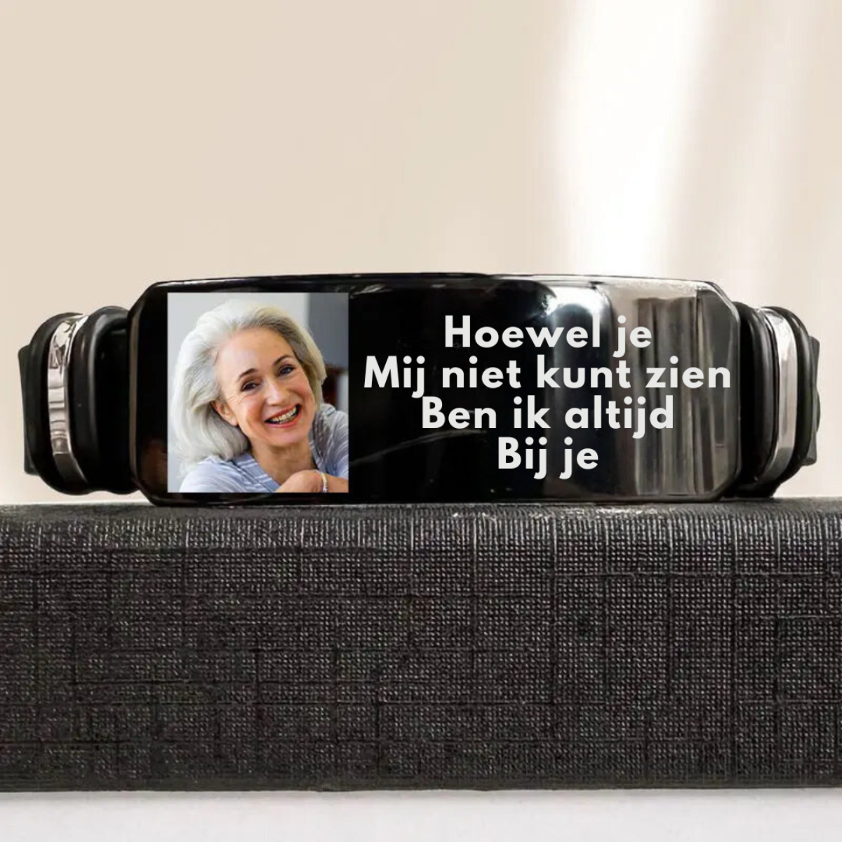 Deze op maat gemaakte armband biedt een manier om geliefden te gedenken op een manier die zowel ontroerend als discreet is. Graveer hun naam, een belangrijke datum of een foto op de armband en laat het een zachte herinnering zijn aan hun eeuwige aanwezigheid in je hart.