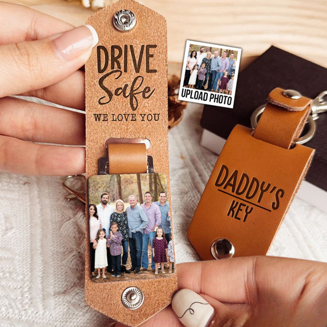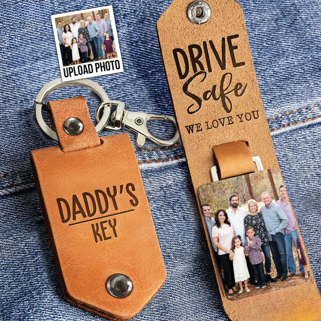Koop vandaag nog de Personalized Drive Safe Keychain for Dad voor Papa en geef hem een attent en praktisch cadeau. Deze hoogwaardige sleutelhanger is perfect om hem eraan te herinneren veilig te blijven op de weg. Bestel nu en toon je liefde!