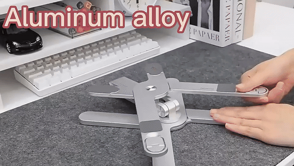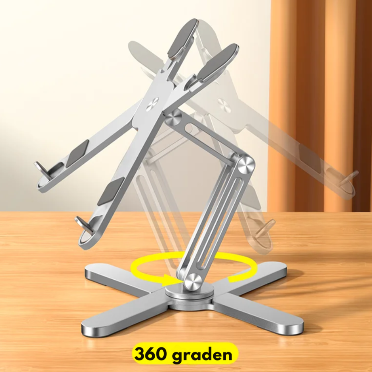 De FlexiStand Laptop Standaard biedt je de mogelijkheid om in elke situatie comfortabel te werken. Of je nu aan je bureau zit, aan de keukentafel, of onderweg bent, deze standaard maakt het makkelijk. Hij is draagbaar, 360° draaibaar en volledig verstelbaar. Je kunt je laptop precies zo instellen dat hij op de perfecte hoogte en hoek staat. Daarnaast is hij gemaakt van stevig aluminium, waardoor hij duurzaam en betrouwbaar is.