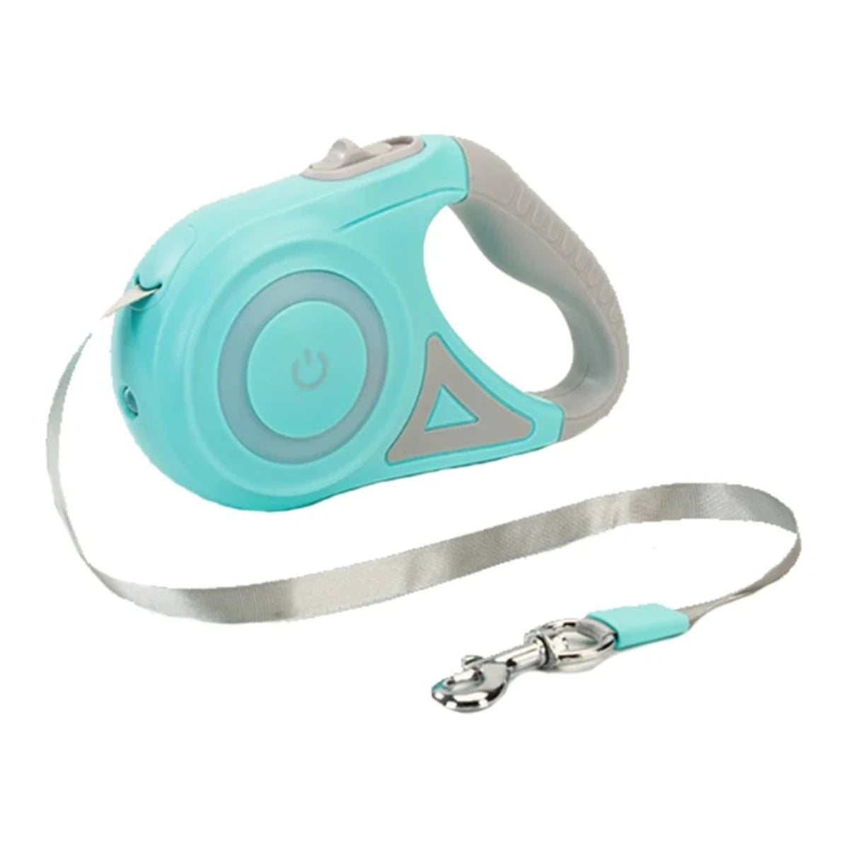 De LED-verlichting van de LumiLeash zorgt voor zichtbaarheid in het donker, terwijl het intrekbare ontwerp een soepele, knoopvrije bediening biedt. Het ergonomische handvat biedt een comfortabele, veilige grip voor plezierige wandelingen.