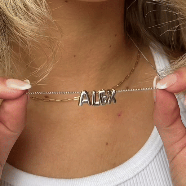 Iedereen geeft graag uitdrukking aan zijn of haar individuele stijl. Met de Name Bubble Necklace kun je jouw identiteit op de meest stijlvolle manier dragen. Laat je sieraden over jou praten! Deze handgemaakte ketting is ontworpen om lang mee te gaan en behoudt zijn prachtige look, of je nu kiest voor goud, zilver of rosΓ©goud.