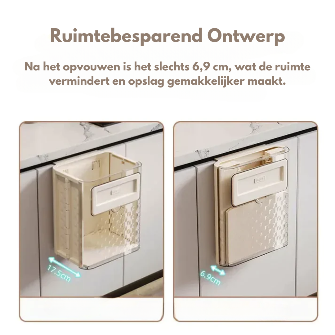 Zeg vaarwel tegen de lompe vuilnisbakken die je kostbare ruimte innemen! Maak kennis met SwiftBin - de slanke, ruimtebesparende oplossing die kan worden ingeklapt als je hem niet gebruikt. SwiftBin is perfect voor kleine keukens, campers en kantoren en kan op lades of deuren worden geklikt, zodat je ruimte optimaal wordt benut en rommel wordt geminimaliseerd.
