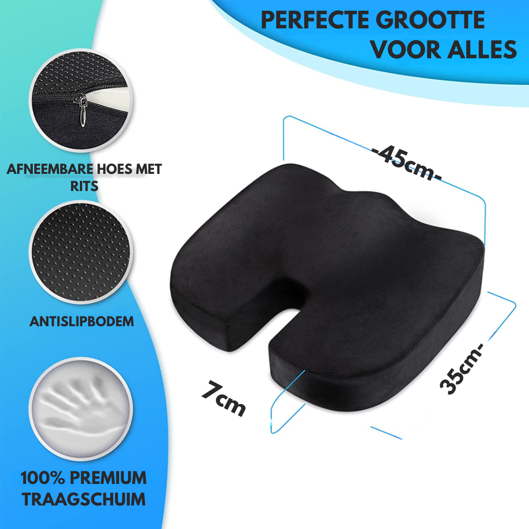 De Ultra Comfort Zitkussen biedt niet alleen ondersteuning, maar zorgt ook voor maximaal comfort. Door de ergonomische vorm zit je altijd recht en worden pijnlijke drukpunten verlicht. Hierdoor kun je langer en comfortabeler zitten, zowel thuis als op kantoor. Perfect voor elke stoel en situatie.